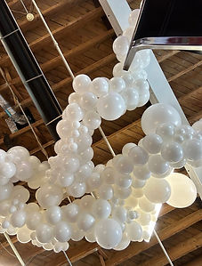 Floating above the stage are clusters of white balloons, delicately arranged to resemble fluffy clouds drifting across a clear blue sky. The balloons are strategically placed to evoke a sense of whimsy and wonder, capturing the imagination of both children and adults alike. Their ethereal presence serves as a visual reminder of the transformative power of education, lifting spirits and inspiring dreams.